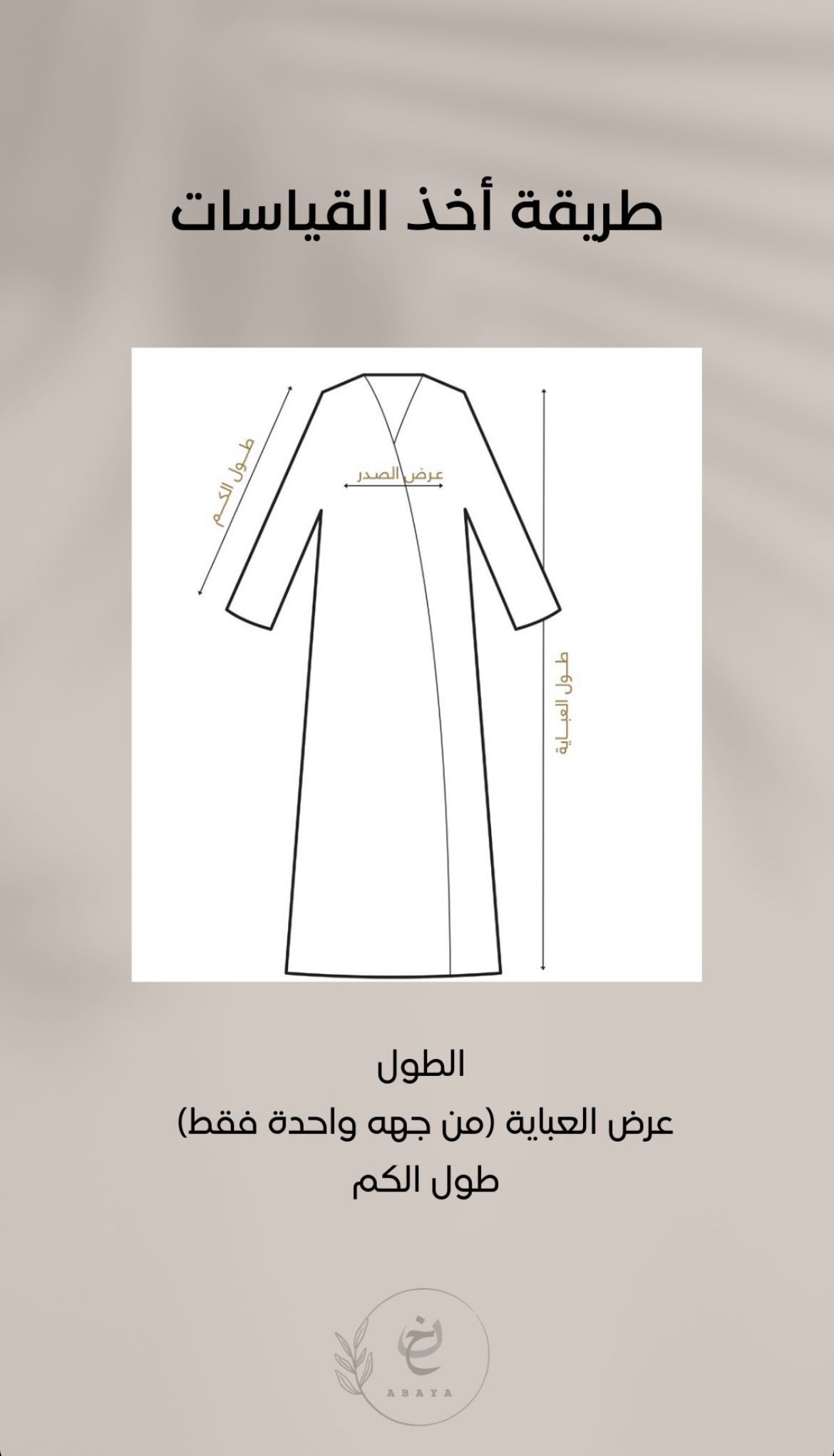 جدول المقاسـات المعتمد لدى متجر NK ABAYA